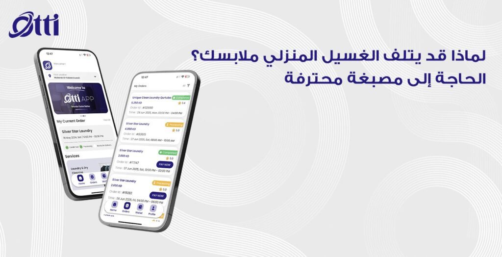 هنا يأتي دور تطبيق أوتي. بصفتنا الخدمة الرائدة في مجال غسيل وكي ملابس في الكويت، نحن نقدم عناية الخبراء التي تطيل عمر ملابسك. نحن ندرك أن الأقمشة المختلفة تتطلب علاجات مختلفة، وهو أمر لا يمكن للغسالة المنزلية تقديمه ببساطة.